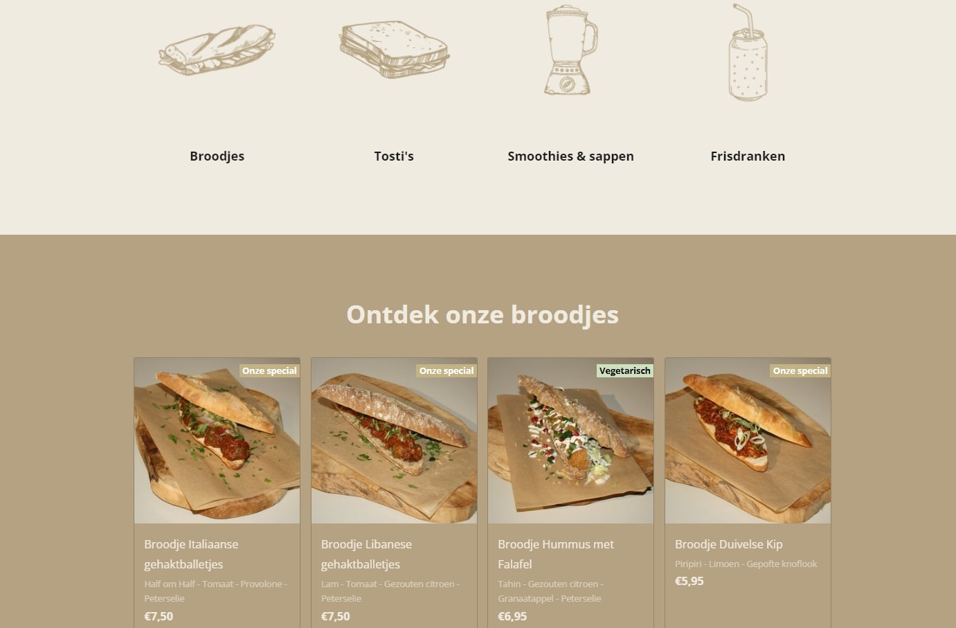 - Een strakke webshop waar je gemakkelijk je broodje en sapje kunt bestellen