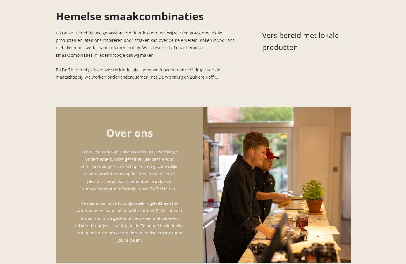 2 jonge ondernemers Josh en Jur zijn samen de broodjeszaak De 7de Hemel begonnen in het Centrum van Hoorn. Hier willen zij nét iets apartere broodjes aanbieden dan er al in Hoorn zijn. In hun broodjeszaak zijn een aantal tafels, maar zij willen ook graag focussen op afhalen en bezorgen. Dus dan is het natuurlijk extra makkelijk als je online kunt bestellen! Zo kwamen zij bij ipsis terecht, zodat we samen een sterke webshop neer konden zetten!