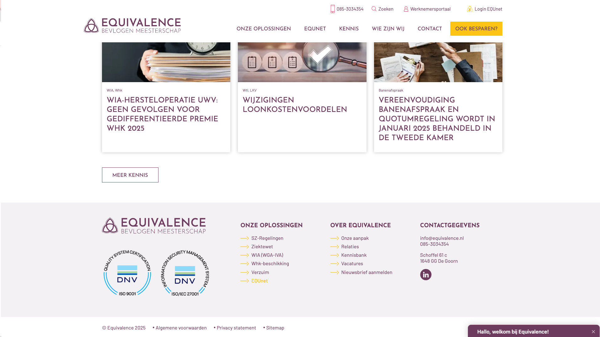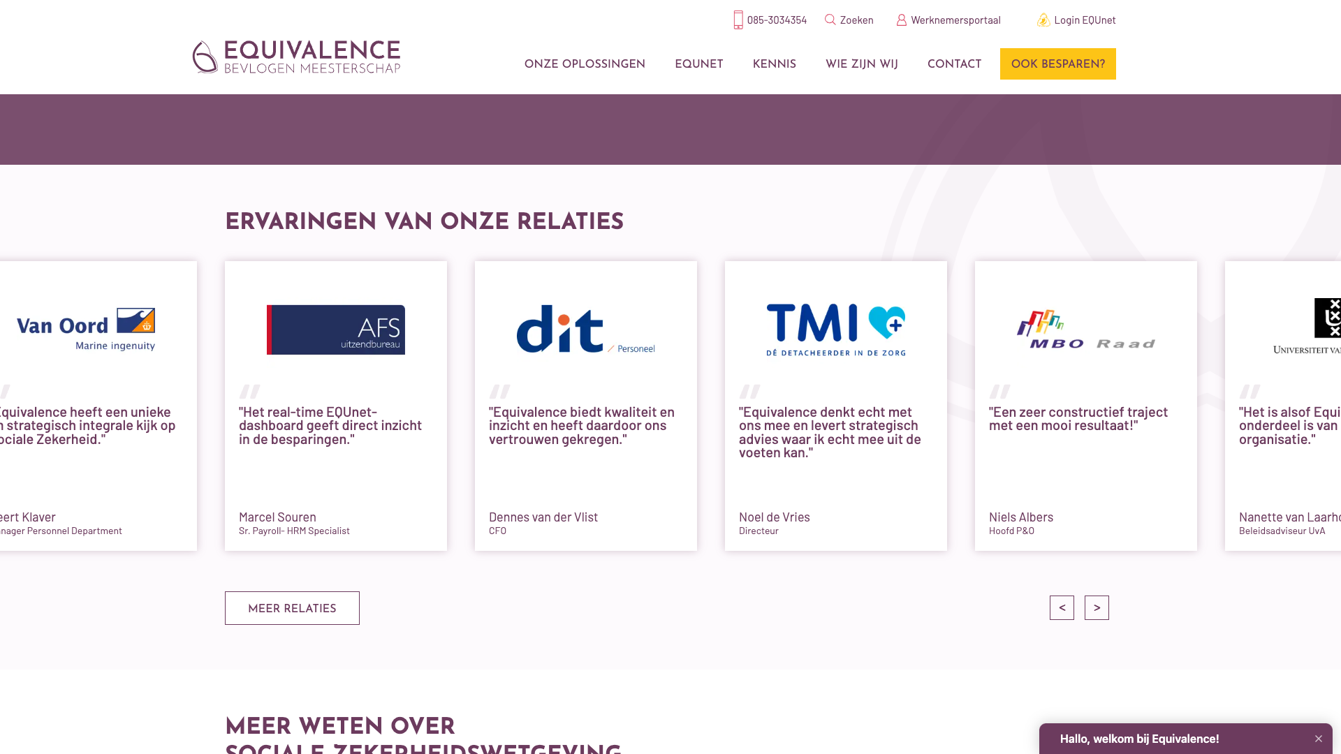 Equivalence bestaat ruim drie jaar. Tijd om de balans op te maken! In drie jaar tijd heeft het bedrijf zich flink ontwikkeld. Het werkgebied hangt sterk samen met de wet- en regelgeving omtrent sociale zekerheid, een werkveld dat doorlopend verandert. Voldeed de website nog wel aan de behoeften van de bezoeker? Equivalence besloot van niet en schakelde ipsis in voor het design en de bouw van hun nieuwe website.