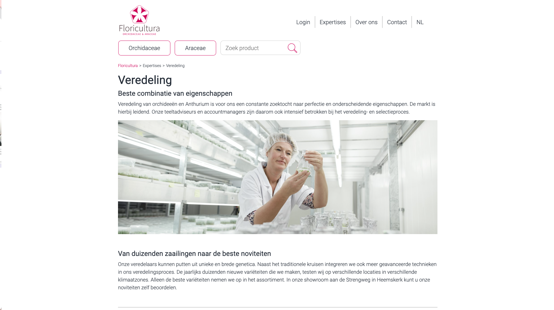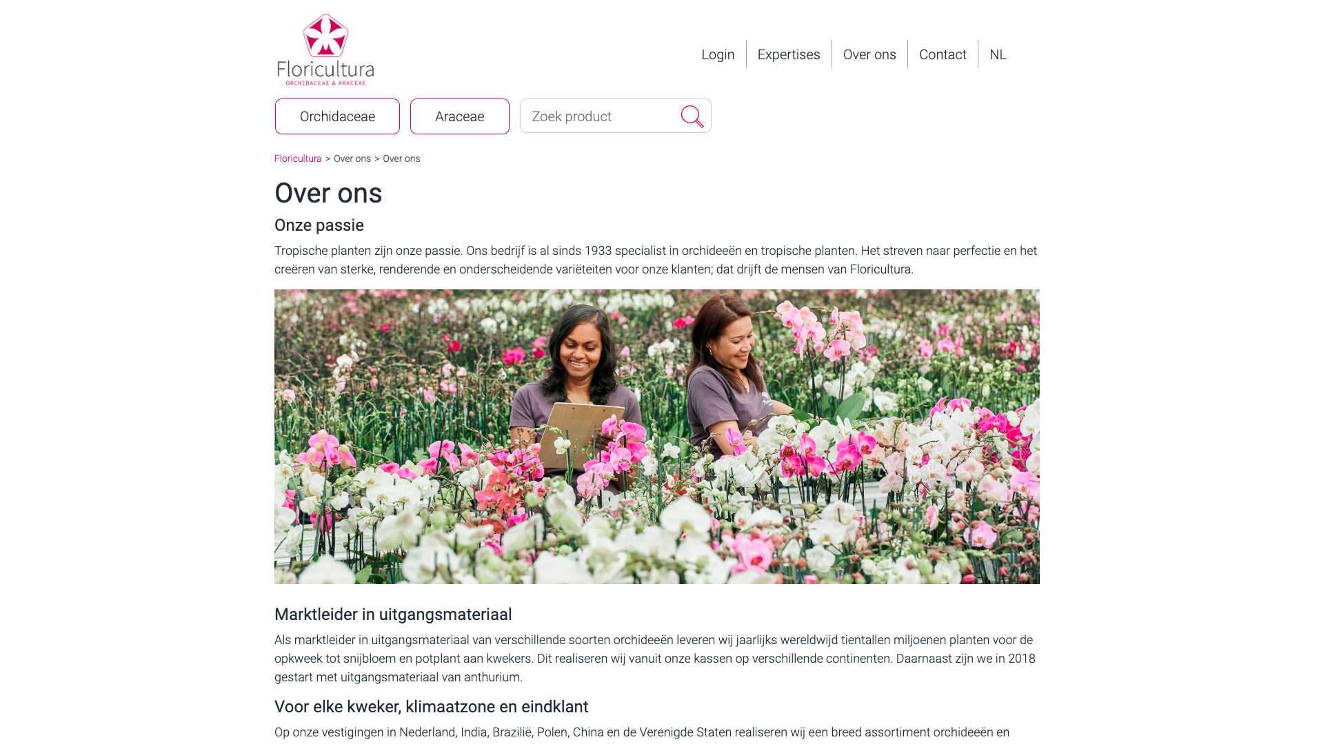 Bij Floricultura hebben ze een passie voor tropische planten. Als specialist in orchideeën en tropische planten leveren zij jaarlijks wereldwijd tientallen miljoenen planten voor de opkweek tot potplant en snijbloem aan kwekers. Floricultura is echt een marktleider en heeft vestigingen over de hele wereld. Het projectteam van ipsis ging langs bij de het hoofdkantoor in Heemskerk. Daar kregen we een rondleiding in de kassen. Daar zagen we hoe het proces bij Floricultura in zijn werk gaat. Een betere inspiratie voor de nieuwe website konden we niet opdoen dan daar. Door direct op de vloer aanwezig te zijn krijg je direct een beeld van wat Floricultura doet en wat de bedrijfscultuur is.