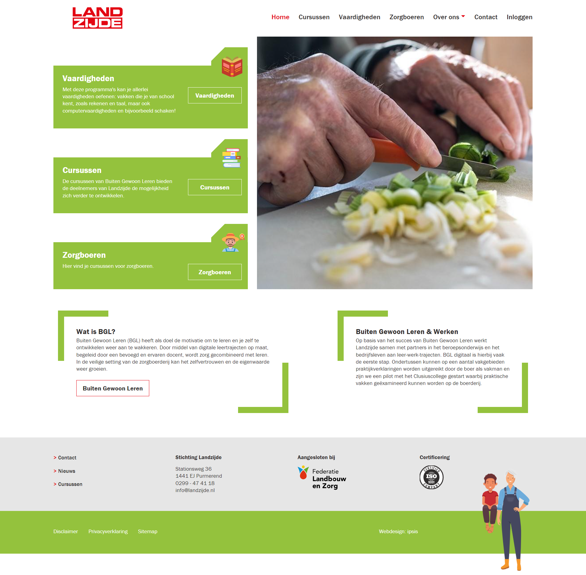 Al eerder mochten wij een prachtige website voor Landzijde verzorgen. Landzijde is een zorginstelling met meer dan 115 aangesloten agrarische bedrijven door heel Noord-Holland. Op de zorgboerderijen worden leren, werken en genieten gecombineerd. Wij kregen de opdracht om voor het leren een platform te ontwikkelen waarop cursussen gevolgd kunnen worden. Landzijde BGL (Buiten Gewoon Leren) heeft als doel om het leren en jezelf te ontwikkelen te motiveren en stimuleren. Aan ons de leuke taak om hier een cursuswebsite voor te ontwikkelen.