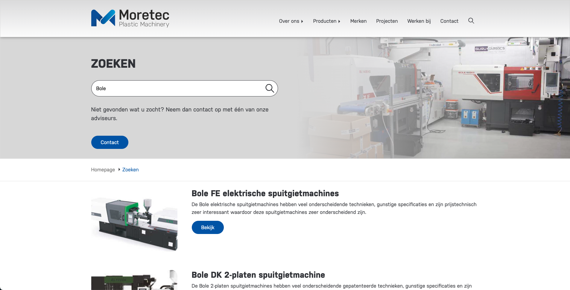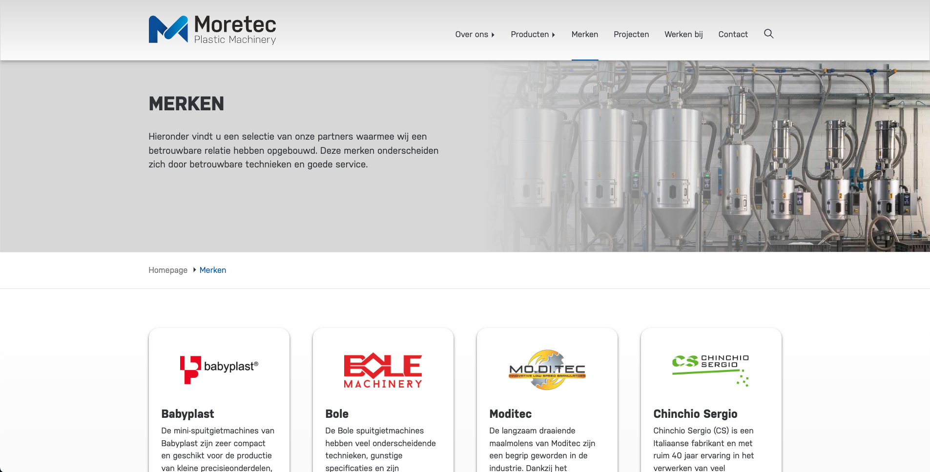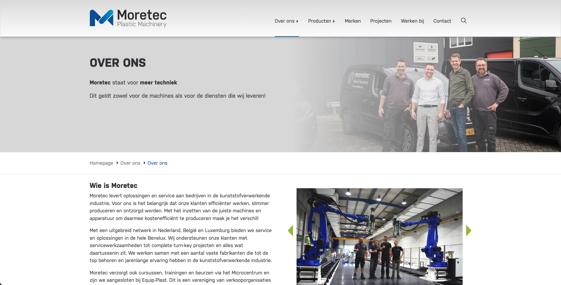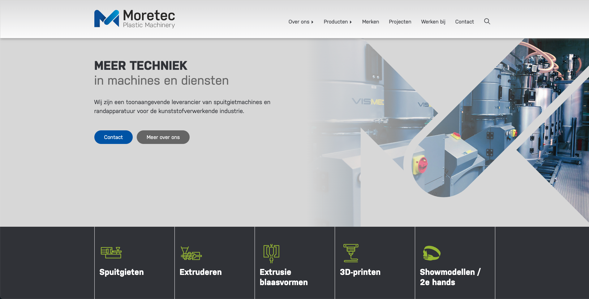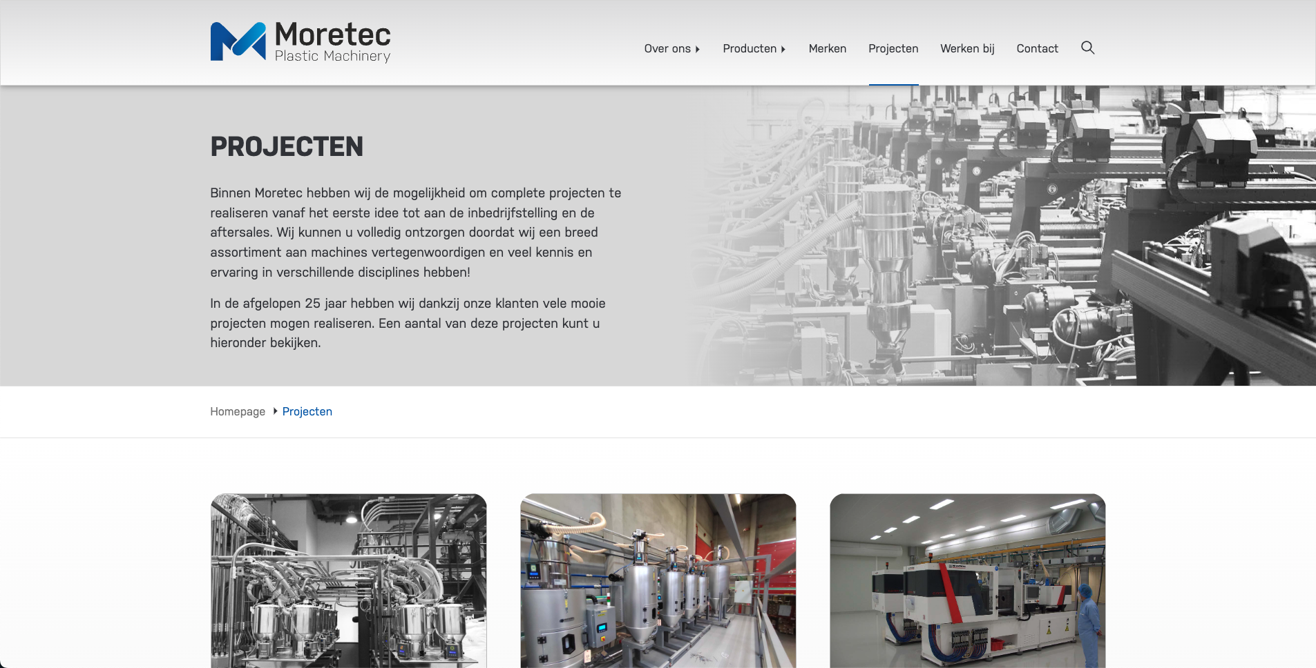 De uitstraling mocht frisser, strakker en zakelijker. Wensen voor de nieuwe website waren een goede vacaturepagina, zoekfunctie en menustructuur, waarbij het aanbod aan machines en aanverwante artikelen in een helder overzicht getoond wordt. Daarnaast wilden ze graag een goede weergave van projecten die zij hebben gedaan, om zo de klant en potentiële werknemers een goed beeld te geven van de mogelijkheden die Moretec kan bieden. Ook willen ze de klant op de hoogte houden van ontwikkelingen en trends in de vorm van een nieuwsoverzicht.
