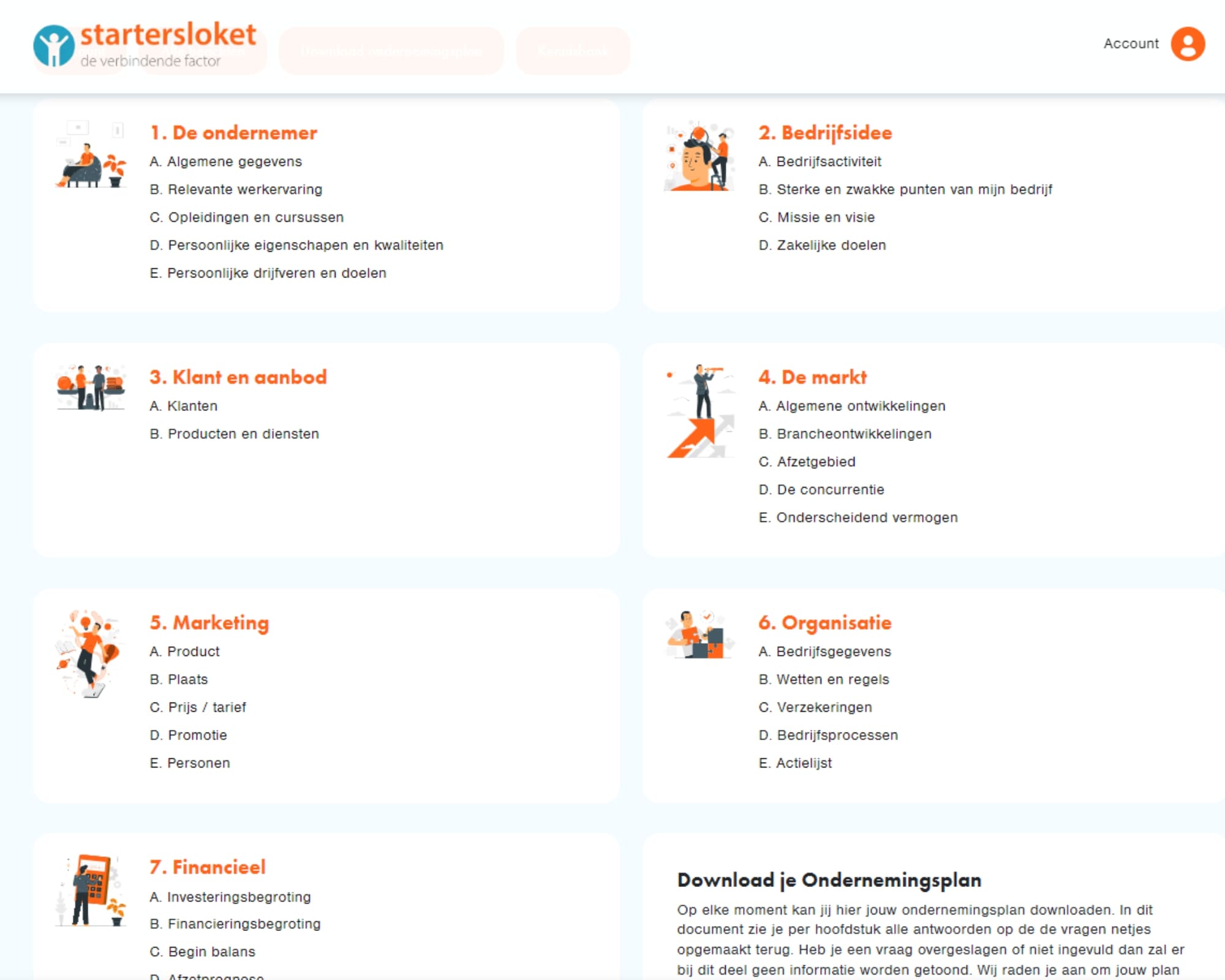 - Achteraf kun je het volledige ondernemingsplan downloaden. Zo krijg je een volledig overzicht van alle stappen in een Word-document die je zelf kunt aanpassen naar je eigen stijl.