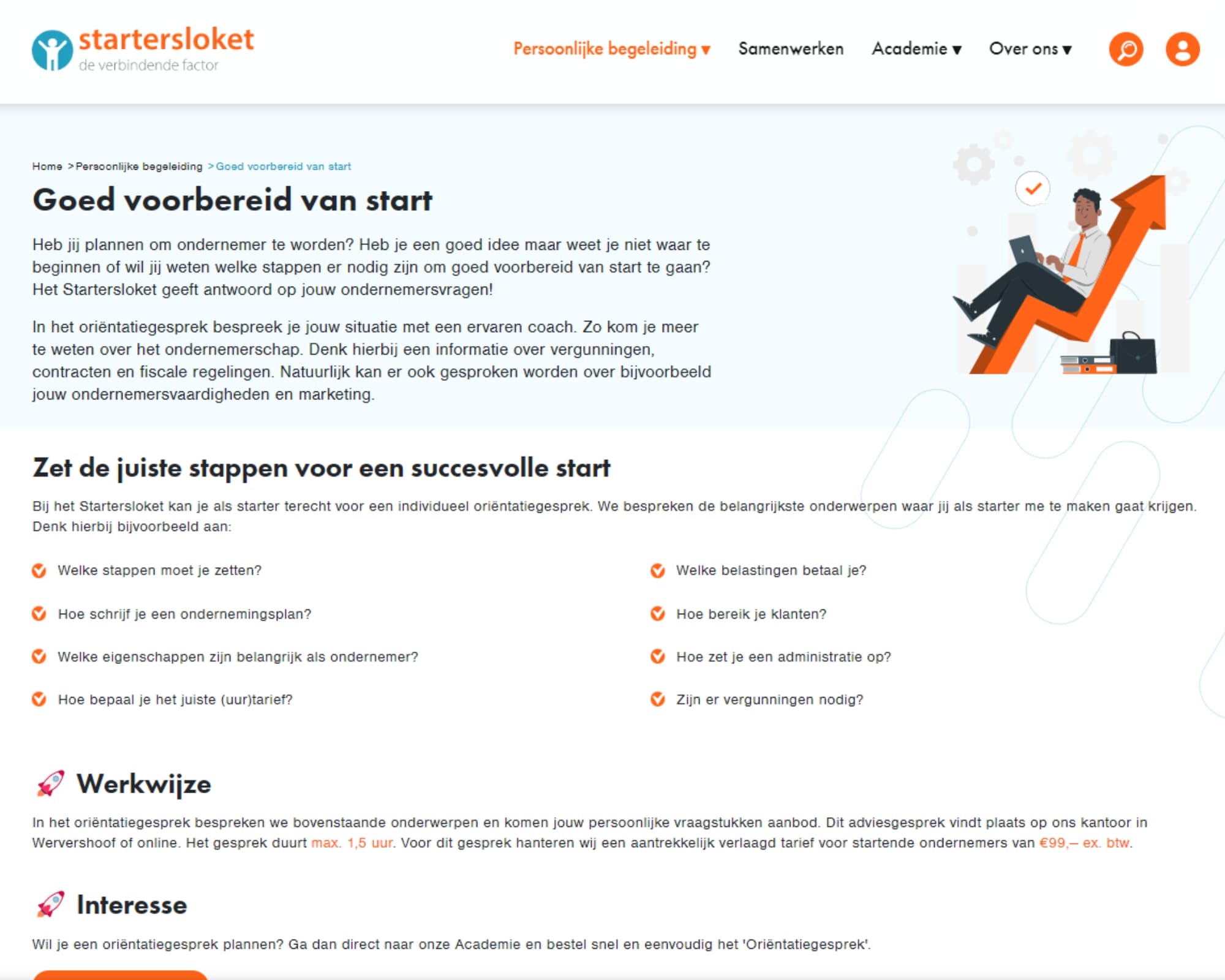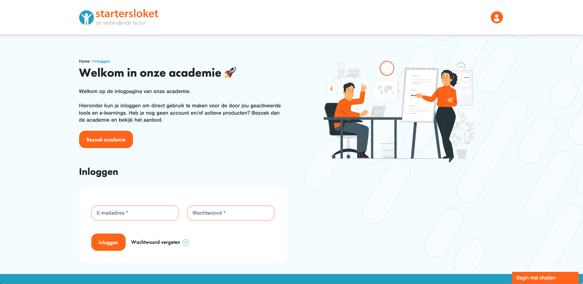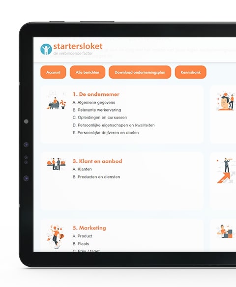 Het Startersloket helpt startende ondernemers bij het opzetten van hun onderneming. Hiervoor hebben wij een online platform ontwikkeld waarin ondernemers een ondernemingsplan kunnen invullen en downloaden en e-learnings kunnen doen mét persoonlijke begeleiding van een coach!
